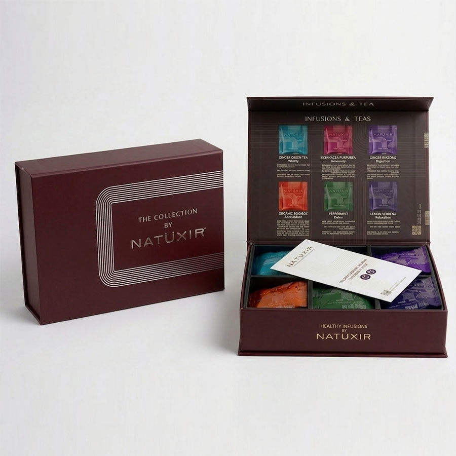 Plongez dans l’univers NATÜXIR avec notre coffret exclusif regroupant toutes nos infusions et thés. Une sélection raffinée qui allie plantes bienfaisantes et arômes délicats, pour vous offrir un voyage sensoriel unique à chaque tasse.